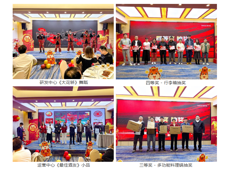 筆記本電腦、手機(jī)、平板、行李箱等豐厚大獎(jiǎng)輪番抽取,幸運(yùn)兒接連誕生,供應(yīng)商伙伴的暖心贊助更添驚喜,整場(chǎng)年會(huì)沉浸在溫馨、歡樂(lè)、熱烈的新春氛圍中。